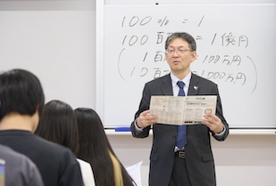 最後に、企業分析に必要なスキルとして財務資料の読み解き方を学ぶため、有価証券報告書の見方を丁寧に解説していただきました。学生たちは実際の数字を追いながら理解を深めていました。「企業分析を行う際に必要なのは、財務資料を読み解く力です」と倉橋様は語ります。次の講義からは、本格的な企業分析がスタート。各チームが財務諸表分析や業界環境分析を行い、報告会でその成果を再び中広の皆様に発表する予定です。