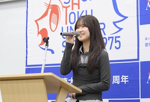 各部門の発表後には観覧者による人気投票が行われ、朗読部門は交流文化学部1年の船戸五月さん、スピーチ部門は名古屋市立赤星小学校3年の孫思楚さんが人気賞を受賞しました。