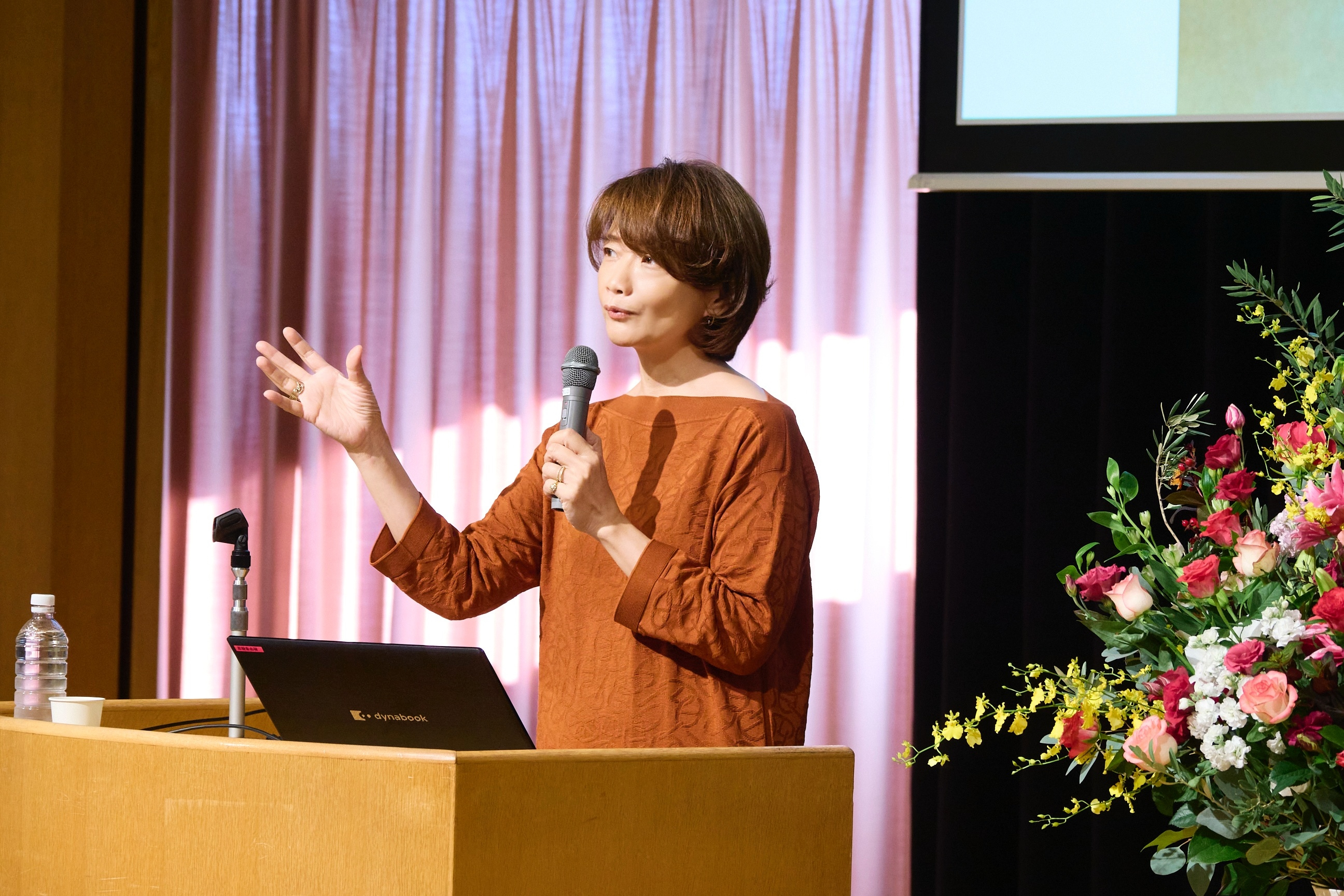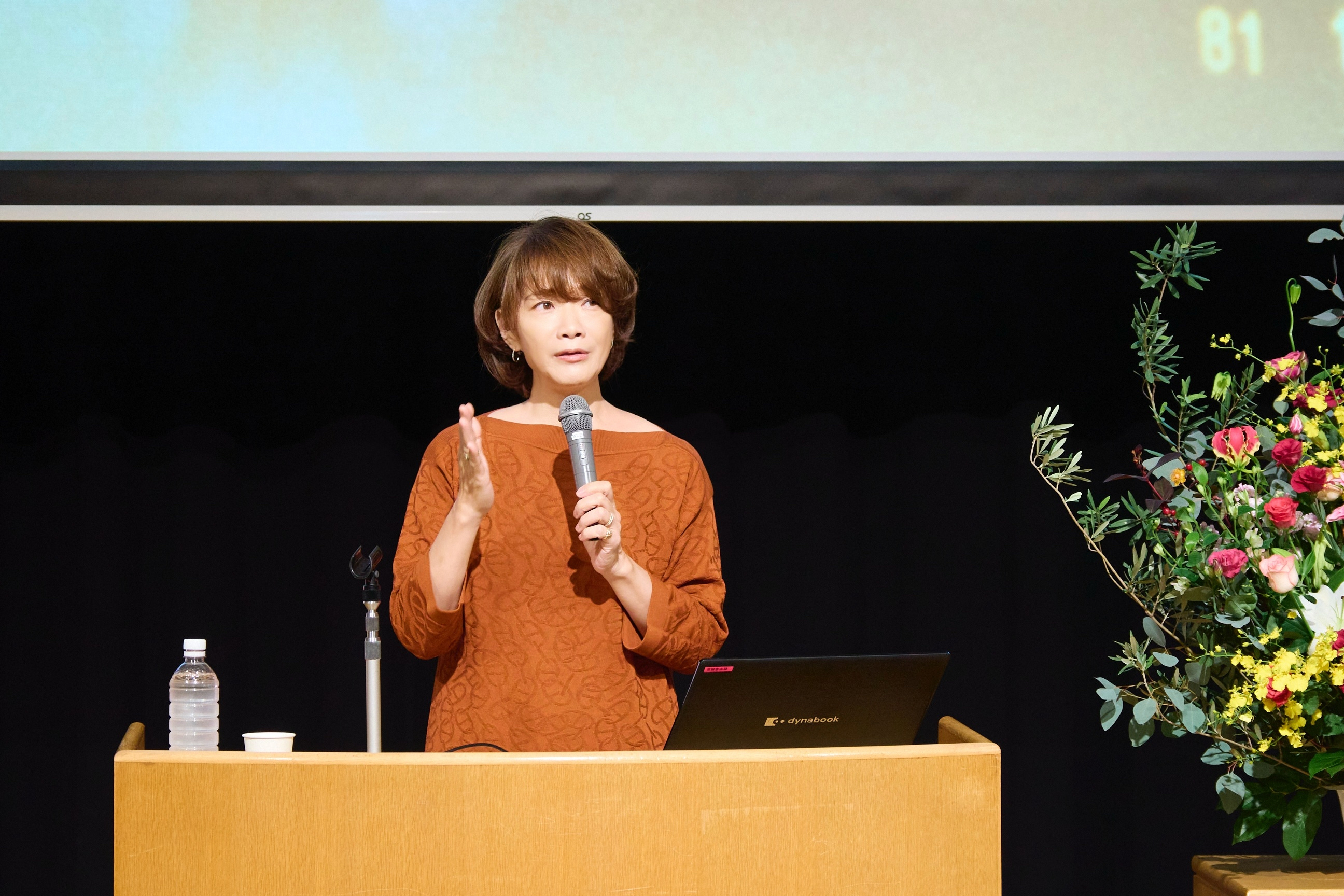 開会に先立ち、五島幸一学長が登壇し「本学は理念『違いを共に生きる』のもと、価値観、個性、能力などあらゆる違いを乗り越え、尊重し合い、自らも発展していくことをめざしています。ヤマザキさんも異文化を体験し、多文化に身を委ねられていらっしゃいます。今日は貴重なお話が聞けることを楽しみにしています。」と挨拶を述べられました。
