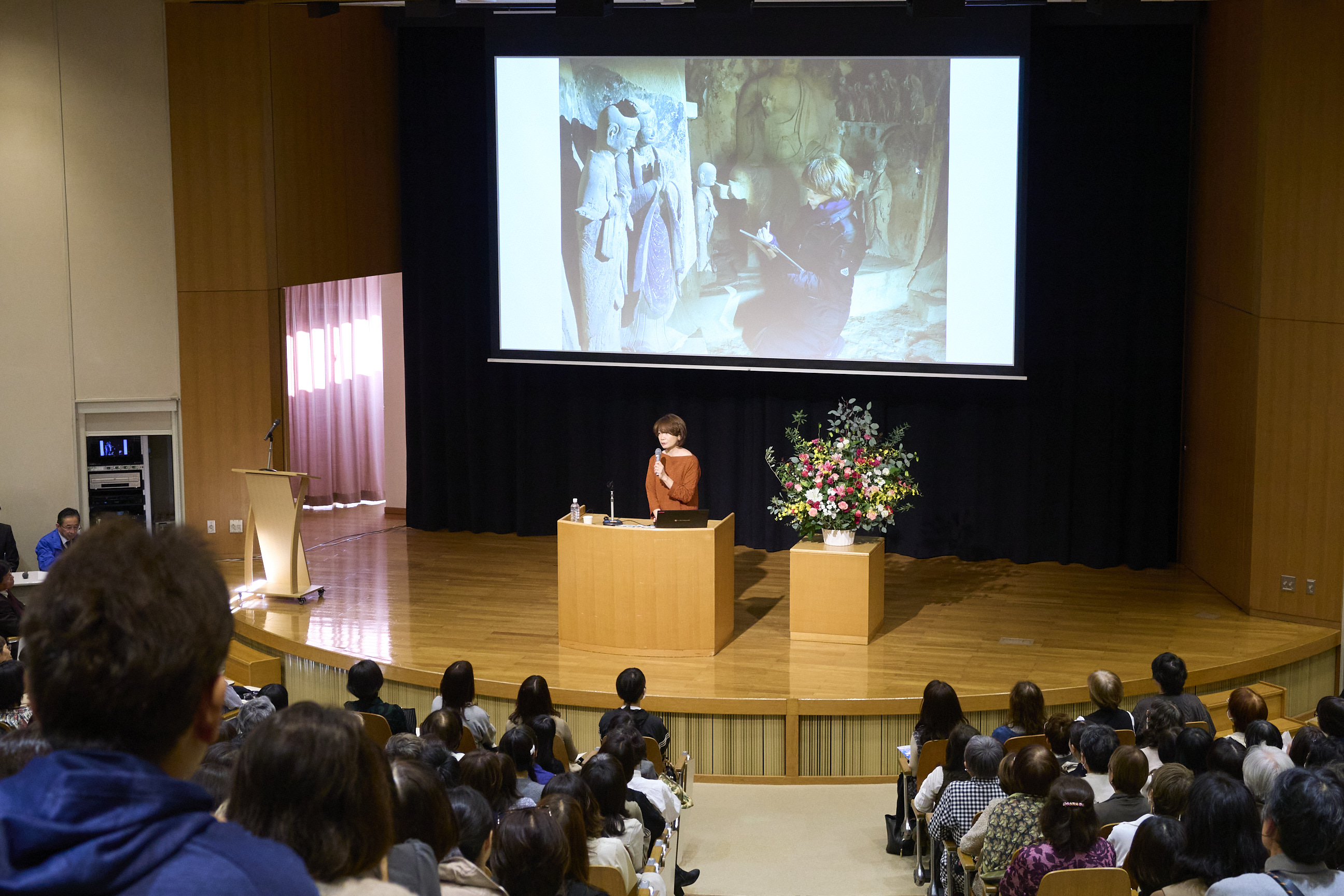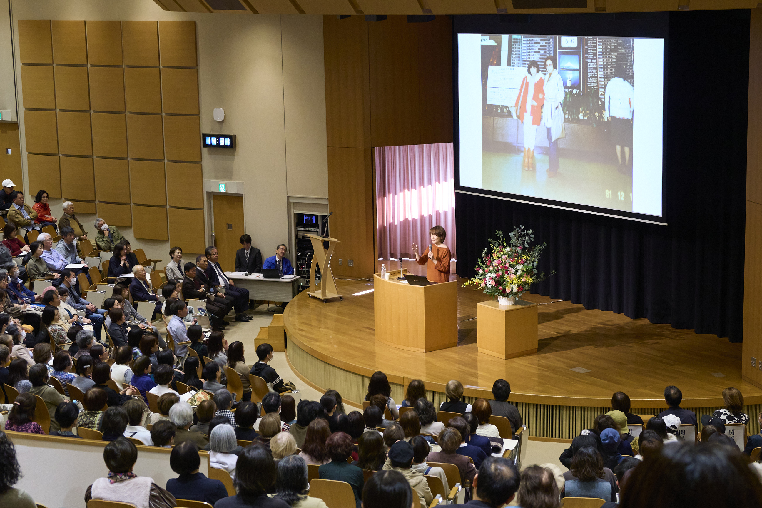 司会を務めたのは、本学卒業生であり、五島学長のゼミ生でもあったフリーアナウンサーの村瀬寛美氏。スムーズに講演会を進行してくださいました。