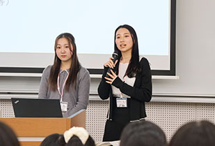 これから就職活動が本格化する心理学部3年生を対象に、キャリアセンターの学生スタッフによる「就活特別セミナー」が2025年11月18日に開催されました。セミナーを担当したのは、心理学部4年生の井村幸知さんと山下愛奈さんです。井村さんはTAKAMI BRIDALのスタイリスト職、山下さんはトヨタ自動車株式会社の内定を獲得しています。セミナーでは、それぞれが第一志望の内定を得るまでの流れや、力を入れていたこと、業界・企業選びのヒントなどを、実体験を交えながら紹介しました。