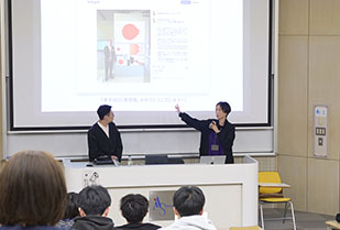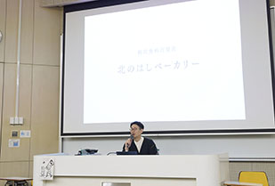 創造表現学部 創造表現学科 メディアプロデュース専攻の宮田雅子教授がオーガナイザーとなり、創造表現学会主催の講演会が開催されました。ゲストスピーカーは、札幌を拠点に全国各地で地域ブランディングを手がけ、話題となるプロジェクトを多数生み出しているアートディレクターの鎌田順也氏です。講演会では鎌田氏が手がけた事例を見ながら、デザインにどんな意図が組み込まれているのか、そしてアートディレクションとは何か、ブランディングとは何かを紐解いていきました。