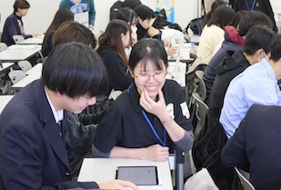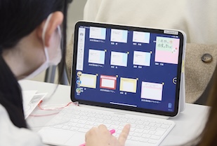 続いてのテーマは、「大学入学までにやっておいた方がいいこと」。学生たちは、全員の意見が集約された際に見やすくなるようなカードのデザインや配置を考え、リアルタイムでクラス全体の意見が可視化されるICTの使いやすさを肌で感じていました。