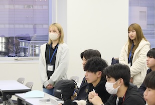 講義の後は、ロイロノートを用いたワークショップがおこなわれました。学生たちはまず、「新入生に向けた長久手キャンパス紹介クイズ」の作成に挑戦。選択式や記述式など、生徒を惹きつけるための工夫を凝らし、アプリにアップロードしました。