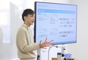 ワークショップの後は質疑応答タイムに。学生からの「ICT導入で何が変わりましたか?」という問いに対し、加藤先生は「教員の作業量が劇的に効率化された」と回答されました。以前は小テストのたびに印刷、採点、押印、返却を行っていましたが、ICTを活用することでそれらの手間が省け、生徒の実施状況もよりリアルタイムで把握できるようになったといいます。また、「ICTを使うと集中力が落ちるのでは?」という懸念については、「最初は遊び感覚で操作を楽しむ様子も見られますが、慣れれば落ち着きます。むしろ、挙手して発言するのが苦手な生徒も、デジタル上でなら自分の意見を表明できるようになりました。場面に応じて使い分けることが大切です」と、現場のリアルな実感を込めて答えられました。