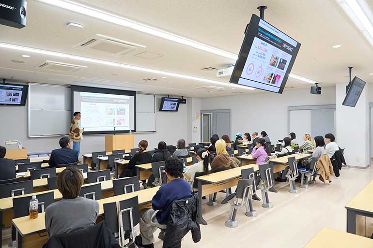 華やかな世界を「ビジネス」という冷徹かつ情熱的な視点で分析した今回の講義。学生たちにとって、自分たちの学びが社会を動かす力につながっていることを実感する貴重な時間となりました。