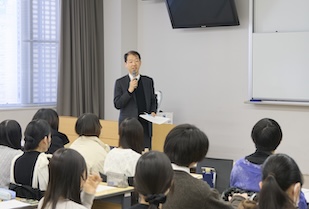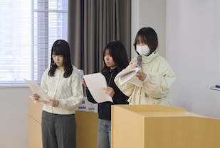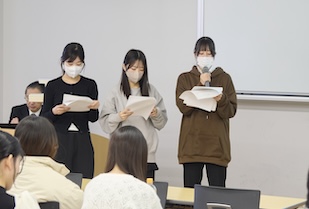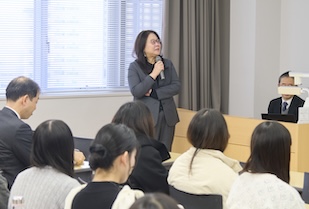 また、本学ビジネス学部教授で同社の社外取締役を務める日野恵美子先生と授業を担当した三浦克人先生からは丁寧な分析発表であったことへの評価と、既存媒体や資料、指標を鵜呑みにするのではなく、そこを出発点として自分たち自身で考えることが重要だと助言をいただきました。3年間の学びを活かしてプレゼンテーションし、さまざまなフィードバックをいただいた学生たち。これから本格化する就職活動はもちろん、社会人となってからも大いに役立つ視点を得られたのではないでしょうか。
