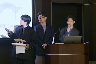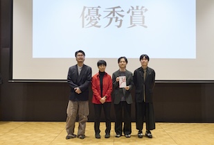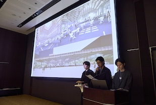 昼休憩を挟み、手塚由比審査委員長による講演が行われ、結果発表と授賞式へ。梅村さん、渡邉さん、山田さんが提案した「Under One Roof」は優秀賞を受賞しました。