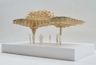 2024年のAICHI WOODY AWARDで受賞した先輩たちに刺激を受け、私たちも応募してみようと思い、3人で1週間、集中して取り組みました。構造が難しく、手塚審査委員長も「建築模型をつくるとわかることがある」とお話しされていましたが、実際に模型を製作したことで、縦には強いけれど横には弱いといったことがわかり、模型の大切さに気づきました。コンペを通して木造の良さを改めて知ったので、住宅だけでなく、さまざまな施設で今回の作品のように木を重ねて組む使い方をできればと考えています。