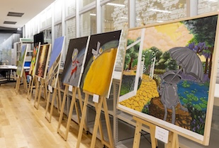 その集大成となる卒業制作展では、4年生11名がこれまでのゼミ活動の成果を来場者に披露しました。会場には多様な作品が並び、それぞれの作品からは、習得してきた技法や個性が感じられました。学生たちの成長と、表現へ真摯に向き合った姿勢が伝わってくる空間でした。