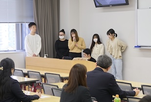 発表後、株式会社中広様から4チームそれぞれの分析内容について講評をいただきました。最後に、「広告業と社会の変化を身近なものとして捉えることができれば、どの業界へ進んでも役立つと思います。マーケティングには広告が欠かせないからです。今回の講義が、みなさんのキャリア形成の中で生かされることを期待しています」のお言葉をいただきました。