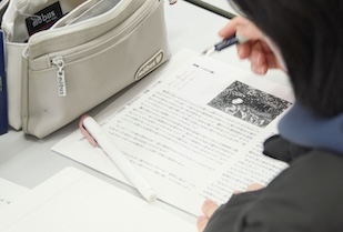 講演後は、学生が執筆した課題作品の公開講評が行われ、3名の作品について、上田氏が丁寧かつ詳細な指導をしてくださいました。時代設定との整合性、描写の裏付けとなる事実確認、そして語彙選択がその時代にふさわしいかといった、プロならではの視点の指摘が次々と示されました。一語一句を見逃さないその姿勢からは、編集者が原稿のどこに着目し、どのように作品を磨き上げていくのかが鮮やかに伝わってきました。上田氏の指摘は鋭いものの、作品をより良くしたいという温かな意図が随所に感じられ、講評を受けた学生だけでなく、会場にいたすべての学生にとって、大きな刺激となりました。