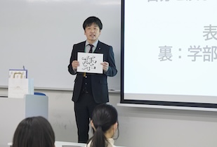 英語の講座では、言語材料を「理解させる段階」と「使用させる段階」の切り分けについて、実践的なデモンストレーションが行われました。山田先生が強調されたのは、その言語材料が使われる「自然な場面」をいかに作るかという点です。不自然なシチュエーションでは、言葉の意味が真に定着しないからです。 デモンストレーションでは、一人の学生を教卓に呼び、先生が話す簡単な英語の指示に従って学生がジェスチャーを行うワークを実施。言葉を聞いて即座に行動へ移すことで、英語を頭で考えるのではなく、感覚として「理解」し「使用」するプロセスを体感しました。学生たちは、文法を教え込むこと以上に、学習者が思わず動きたくなるような環境づくりの重要性を深く学んでいました。