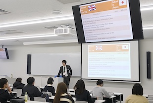 社会科の模擬授業では、「桃太郎」という誰もが知る物語を題材に、現代の法的な視点からその是非を問うというユニークな試みが行われました。学生たちは裁判員になりきり、桃太郎の行動が「罪になるか、ならないか」をディスカッション。「罪になる」と答えたグループからは、「桃太郎の独断による武力行使であり、無抵抗な鬼への暴行は過剰防衛ではないか」といった鋭い意見が上がり、馴染みのある物語が全く別の側面を持って見えてくる驚きを共有しました。後半の講義では「Society 5.0」やデジタル革命に触れ、既存の価値観が揺らぐ時代だからこそ、情報を多角的に分析し、自分なりの正解を導き出す社会科教育の必要性が説かれました。