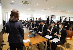 セミナー開始前には、丹藤キャリアセンター長が企業担当者へ挨拶を行い、「低学年からのキャリア意識の高まりを受け、今年は例年以上に2年生も多く参加しています。ぜひ、貴社の魅力を学生たちに存分に伝えていただき、実りある時間にしてください」と述べ、学生たちの高い意欲に期待を寄せました。