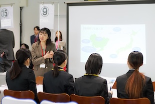 ブースの中には、本学の卒業生が人事担当として参加している企業もあり、「私もこのセミナーがきっかけで今の会社に出会いました」と後輩へエールを送る姿も見られました。質疑応答では、キャリアステップや社風について積極的に質問する学生が多く、2日間で延べ850人の参加者による熱気に会場は包まれました。