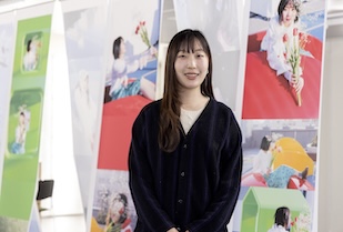 稲木さんが企画立案を考えた背景には、今年の夏に学外で写真展を開催したことがきっかけです。次なるステップアップをめざすには、どのように活動を発展させていくべきか、その機会をつくるために、本企画を立ち上げたといいます。公募で集まったメンバーは、企画の中心となった稲木さんをはじめ、メディアプロデュース専攻1年生の大川優羽さん、同3年生の成田ことみさん、創造表現専攻4年生の野口真杜さんの4人。全学年・全専攻が交わる構成となり、普段の授業やカリキュラムの枠を越えて、ともに一つの展覧会をつくり上げました。