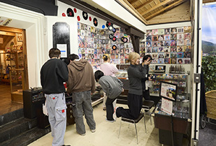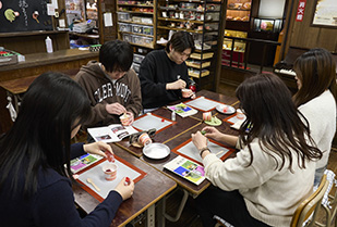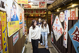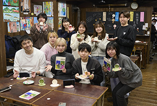 1日目の午前中は、郡上八幡の城下町を自由に散策。風情ある町並みを歩きながら、それぞれが気になった場所に立ち寄り、郡上八幡ならではの歴史や文化に親しみました。郡上八幡城まで足をのばす学生もおり、城下町を見渡しながら、その土地の成り立ちや魅力を体感しました。その後は「さんぷる工房」で、郡上市の伝統産業である食品サンプル作りに挑戦。初めての体験に戸惑いながらも、お店の方の丁寧な指導のもと、一人ひとつずつオリジナルのスマホスタンドを完成させました。併設された「レトロアート館」では、昭和・平成の生活用品や流行に触れ、加藤先生の思い出話を聞きながら、時代とともに変化する暮らしを実感する時間となりました。