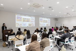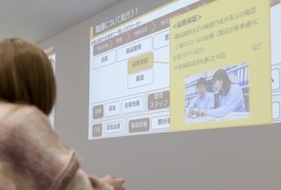 社員の方が「理想の味わいを追求する楽しさはありますが、実際には緻密な原価計算や、納得がいくまで繰り返される試食会など、地道な努力の積み重ねが不可欠です」と話す一方で、「市場リサーチとして、他社のお菓子をたくさん食べられるのは幸せです」と本音も飛び出し、学生たちを和ませる一幕も。華やかなヒット商品の裏側にある「開発の苦労」や「やりがい」を知り、将来、食品業界を目指す学生たちにとって、非常に具体的で身の引き締まるお話となりました。