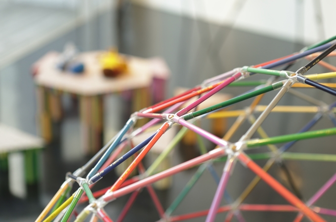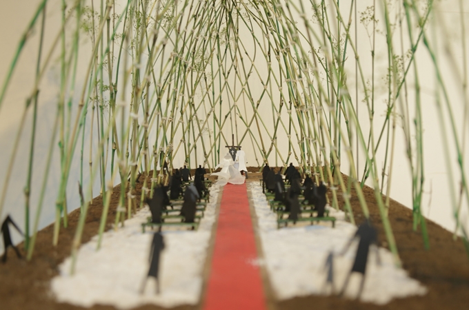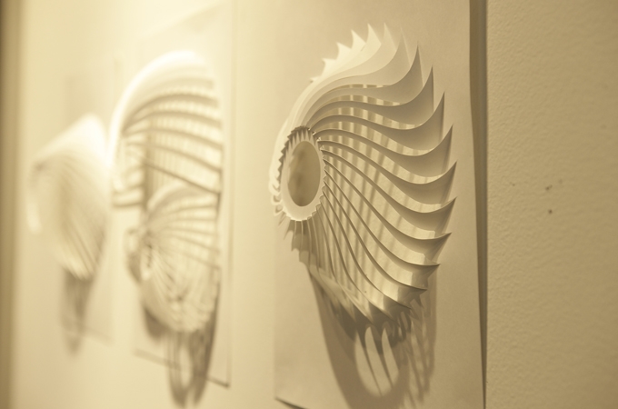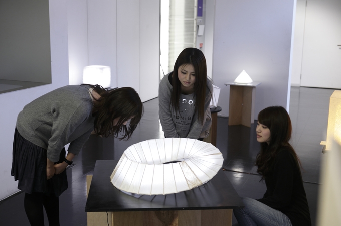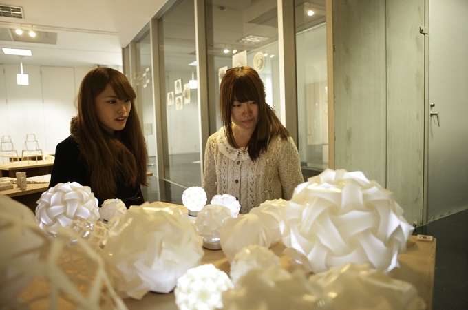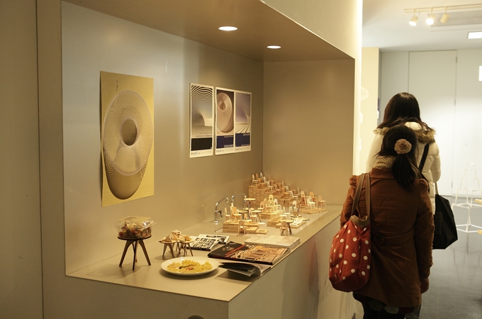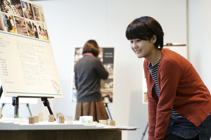 長久手キャンパス8号棟5階は、「メディアプロデュース学部 都市環境デザインコース」の専用フロアになります。ここにあるミニギャラリーでは、定期的に作品展示がおこなわれており、学内外を問わず、さまざまな作品が展示され、在学生のみならず多くの来場者に鑑賞いただいています。