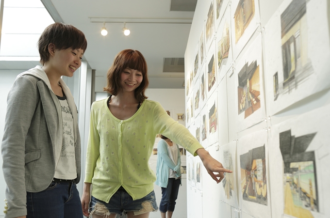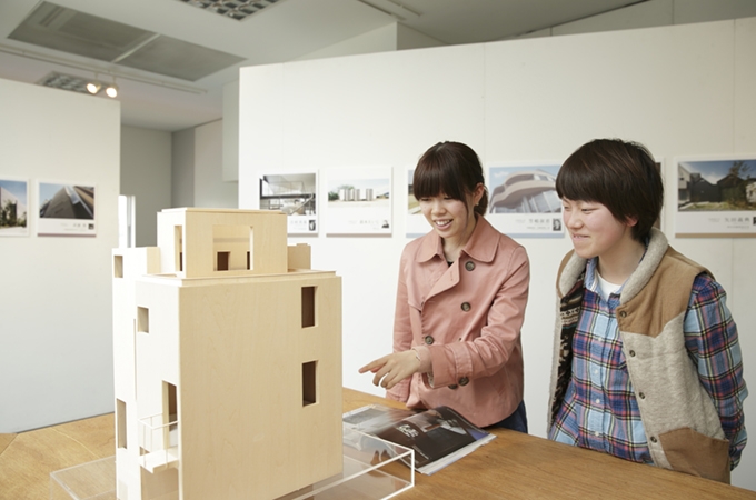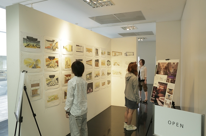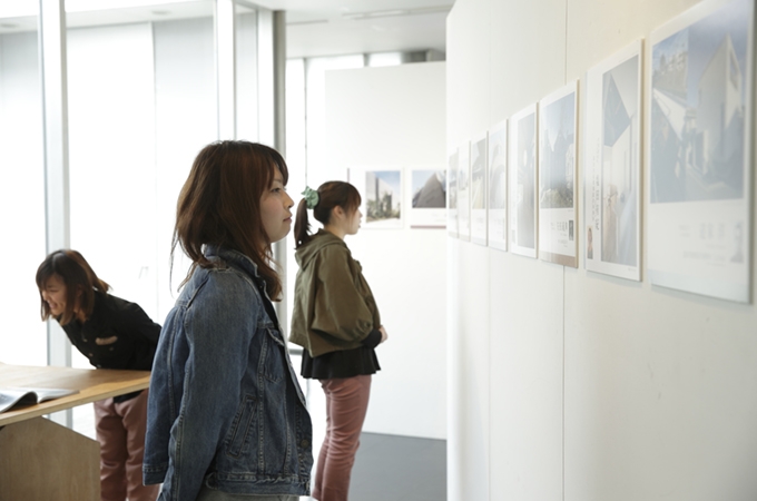 長久手キャンパス8号棟5階にあるミニギャラリーでは、メディアプロデュース学部メディアプロデュース学科都市環境デザインコース関連のさまざまな展示が一年を通しておこなわれています。 プロの作品や都市環境デザインコース所属の在学生の優秀作品などを、学内者に限らず一般の方も自由に鑑賞することができます。また、出展者のギャラリートークも開催されます。