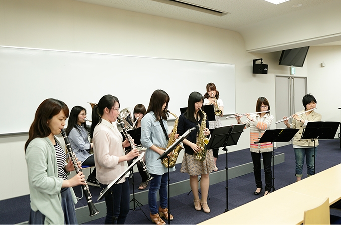 愛知淑徳大学には90団体以上のさまざまなクラブ・同好会・委員会があります。 今回はその中から「☆キャンウィンドアンサンブル」と「風呂部A」の活動風景をピックアップ! ※「風呂部A」とは温泉旅行とフリーペーパーの発行をおこなっているクラブです。