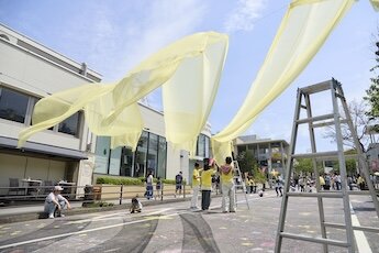 4月19日(日)、星が丘テラスにて開催された「星が丘ミチビラキ」に、建築学部の間宮ゼミが企画として携わりました。当日は会場にて、ゼミ生が空中装飾などの展示を手がけました。