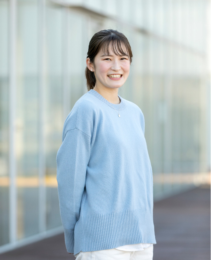 幼稚園教諭一種免許状、保育士資格の取得をめざし、計5回の学外実習を経験しました。実習は2年次の後期からスタート。最初の幼稚園での教育実習では、クラスの担任の先生に代わり、1日の指導計画を立てて保育を行う、「責任実習」を経験しましたが、はじめてということもあり、自由に動きまわる子どもたちに翻弄されました。その反面、様々な子どもと接することで、子どもたちの成長の差や性格の多様さなど心の内を少しずつ理解できるようになる手ごたえも感じました。授業では保育・幼児教育の知識や技術を学びましたが、実習で思い通りにいかないこともありました。しかし、実習を重ねるごとに、臨機応変に対応することや子どもの楽しませ方などを考えて行動に移せるようになったと思います。また、各施設の先生方は、全ての子どもたちに目を向けて保育に従事している一方で、先生方ご自身が楽しんでおられる様子が垣間見えました。子どもの成長を感じながら、イキイキと仕事ができる保育者に改めて魅力を感じました。卒業後は、“子どもも自分も楽しい”ということを意識しながら、子ども一人ひとりと向き合うことを忘れず、みんなが笑顔で過ごせるクラスづくりができる先生をめざします。