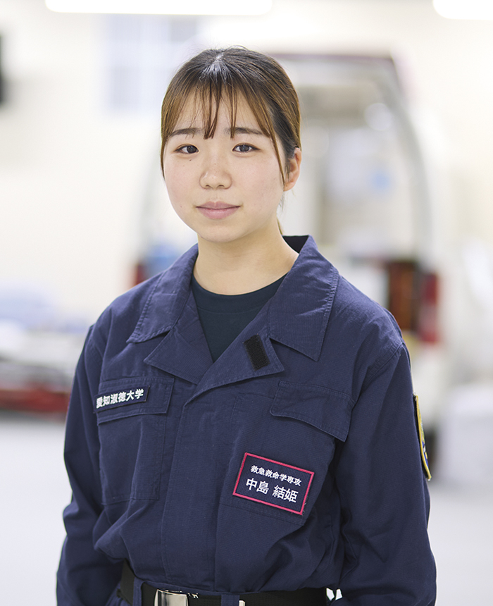 『救急救命見学実習』では、航空自衛隊、大学病院、消防署など救急救命士が実際に働く現場へ見学に行きました。特に印象的だったのは、救急車で傷病者が大学病院に搬送される現場を目の当たりにしたことです。緊迫した状況の中、救急救命士が冷静沈着に対処している姿を見て、自分の知識や技術が不十分なことを痛感すると共に、「命を救う最前線で活躍できる救急救命士になりたい」という気持ちがさらに強くなりました。将来像が明確になり、現場で役立つ学修や実践を積み重ねたいと、学ぶ意欲がさらに高まった貴重な経験でした。