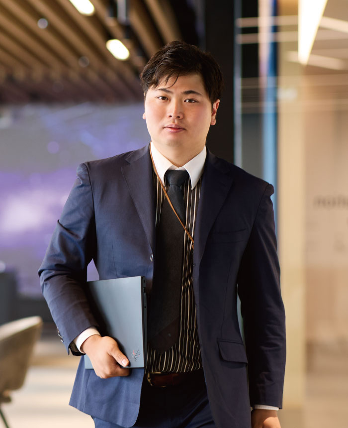 現在は金融システムの開発チームを管理するプロジェクトマネージャーとして、業務をスムーズに進められるようにお客さまと打ち合わせを重ねたり、システムエンジニアのチームメンバーに役割を割り当てたりしています。チームをまとめる立場として大切にしているのは「一人ひとりに向き合う」こと。メンバーの能力や考え方はさまざまであり、適材適所の環境でなければ、パフォーマンスを最大限に発揮することは難しいでしょう。そのため、メンバーの気持ちや価値観などを尊重し、働きやすい雰囲気をつくることを意識してコミュニケーションを取るようにしています。大学に入学した当初は、エンジニアの仕事は一人で取り組むものだと思っていました。しかし、授業の中でエンジニアの仕事はチームでおこなうということを学び、エンジニアに対するイメージが大きく変わりました。実際に授業やゼミでは情報や目的を仲間と共有し、役割を分担して課題に挑戦することがあり、メンバー間で連携することの重要性を学んだのですが、マネジメントを担当している現在、その重要性をいっそう実感しています。マネジメントはプロジェクトの核を担う責任のある仕事であり、業務をこなすたびに改善点が見つかりますが、その分、次回のプロジェクトの最適化、つまり私自身の成長につながります。今後はより大規模なプロジェクトに携わり、マネージャーとしての高みをめざしたいと考えています。