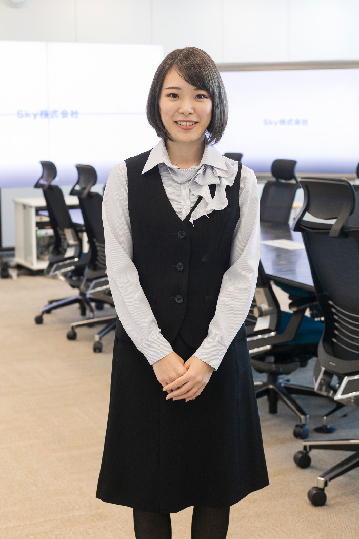 子どもが好きなことや、人と人との関わり合いに興味があった私は、コミュニケーションの根幹を知りたいと思い心理学科に入学しました。愛知淑徳大学は「生理・認知」「社会」「発達」「臨床」という心理学の要である4領域を幅広く学べる環境が魅力です。特に印象に残っているのは、『対人コミュニケーションの社会心理学』という講義。「赤信号、みんなで渡れば怖くない」のような行動を社会心理学の視点から見ることで、個人と集団での思考の変化を学びました。3年次には、子どもの変化・発達過程を学ぶ発達心理学のゼミを選択し、卒論では、3~4歳児からできるようになる、与えられた指示とそのひとつ前の指示を区別することについて研究。研究を進める中で、結果から結論を導き出す考え方や研究プロセスの組み立て方なども身につけました。心理学から人と接することの奥深さを知り、卒業後は人と接する機会の多い総務職としてSky株式会社に入社。物事が円滑に進められるよう社員と接する際には、相手の気持ちを和らげる効果のある笑顔を心がけるなど、心理学が日常の小さな場面にも活かせることを実感しています。今後はこれから取り組むさまざまな業務に対し、心理学で学ぶことで得られたプロセスの組み立て方やコミュニケーションスキルを活かして取り組んでいきたいです。