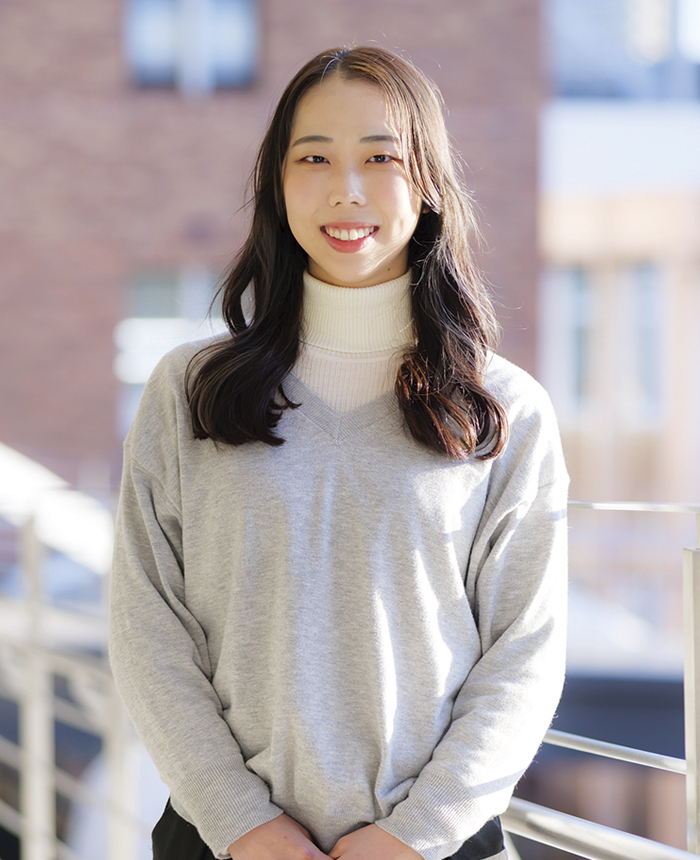 中国語の修得に力を注ぎ、さまざまなことに挑戦した4年間。『中国語国内研修』では、「文化の交流」をテーマに、日本語を学んでいる現地の中国人大学生と、日本語・中国語を交えながらオンラインで互いの国の食や音楽、行事などについて語り合いました。ゼミでは、日本の家庭料理の作り方と魅力を伝える動画を制作し、SNSで発信。自分たちで料理を作り、会話も字幕もすべて中国語の動画を完成させました。こうした授業を通して、多様な文化や価値観を受け入れ、相手の気持ちを考えることの大切さを学びました。スピーチコンテストへの出場やHSK5級の取得など、中国語の向上に努めたことも自分を成長させる貴重な経験になりました。これからも多様性を受け入れ、人のために積極的に行動できるよう努力していきます。