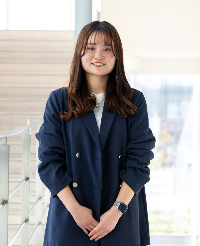 就職先のトヨタ自動車は、海外にも拠点や取引先があります。当たり前のように異文化交流があり、その地域に最適な製品や販売戦略、コミュニケーションが求められます。これまで授業の中で、偏見や先入観を持たず、お互いの意見が異なった場合でも建設的に話し合い、意見をひとつにまとめることを何度もおこなってきました。また、授業以外でも、日常的に異文化交流ができる施設「グローバルラウンジ」でさまざまなイベントに参加し、たくさんの留学生と交流してきました。それらの経験を通して身につけた人の本質に向き合う力と、相手の思いや立場に合わせたコミュニケーション能力を活かし、世界中の人たちに製品の魅力を伝えていきたいと思っています。