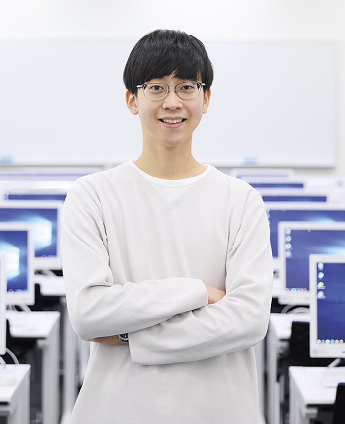 また、人間情報研究会にも所属し、音楽や3Dグラフィック、プログラミングが得意な仲間と共にゲーム制作にも挑戦。完成した作品をWEBや大学祭で公開し、多くの人に楽しんでもらえた時は、ゲーム制作のやりがいを感じました。