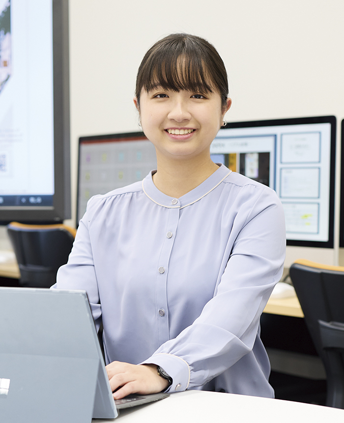 本専攻のカリキュラムの魅力は、理論と制作の両方を学べること。授業では動画や画像の編集、プログラミング、企画立案など、メディア分野に必要な基礎知識やスキルを身につけることができました。在学中に力を注いだのは、学びを実践に活かしたイベントの企画・運営です。3年次には自ら考案したメディア作品展を学外のギャラリーで開催。メンバー集めや会場の手配、スケジュール管理や予算調整までイベントづくりを実践的に経験し、さまざまな人と協働することにやりがいを感じました。また、メンバーそれぞれが自分の強みを発揮できるよう役割を考慮したことで作業をスムーズに進めることができ、イベント参加者の満足度を高める展示会が実現し、適材適所を見極める大切さに気づきました。ゼミではメディア心理学について学修・研究。「クラフトビールのパッケージが与える影響」をテーマに、若者の購買意欲を刺激する色や模様、書体などを細かく調査・分析し、その結果をもとにメディア心理学に基づいたデザイン制作に取り組みました。就職先は、多様な人と関わることができる仕事がしたいと思い人材派遣会社を志望。誰もが自分の強みを発揮できるよう、コミュニケーションを大切にしながら積極的にサポートし、私自身も成長し続けたいと思います。