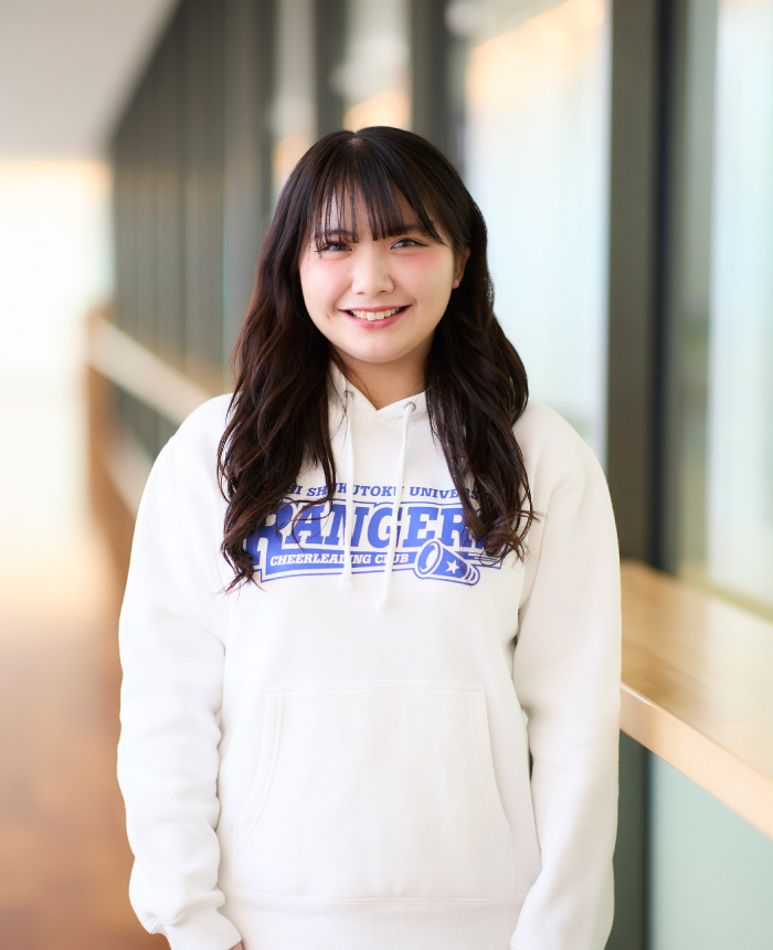 中学生の時から保健体育の教員になりたいという思いがあり、入学後は教員免許の取得をめざしました。専攻の科目以外に教員免許取得のための科目を履修したことで、模擬授業や教育実習など人前で話す機会があったほか、専攻科目ではグループワークやグループディスカッションをおこなう授業が多くあり、相手にわかりやすく伝えるスキルが身についたと感じています。また、高校から始めたチアリーディングを大学でも部活で4年間続け、リーダーシップの重要性とチームワークの大切さについて改めて学びました。卒業後は、取り扱う商品を通して、スポーツや健康、ファッションなど、多様なニーズに合わせた接客が必要とされます。大学での多くの出会いや学びで得た経験を活かし、一人ひとりのお客さまと丁寧に向き合いながら商品の提案をしていきたいと考えています。