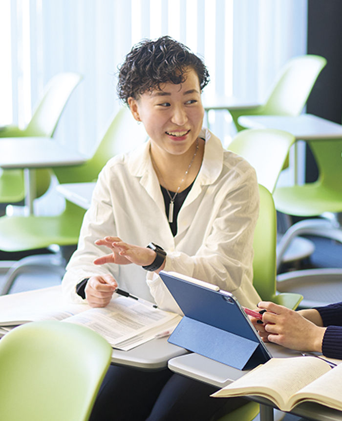 将来、国際協力や国際開発に携わりたいと考えていた私は、英語をツールとして使う力を養うため、本学科に入学。1年次のFEP(First-year English Program)では、少人数での反復型学修システムのもと、英語の基礎力を徹底的に鍛えました。その力を基盤として、2年次からは世界経済事情や海外の文化、ジェンダーなどを英語で学修。授業を受けるだけでなく、学外のボランティア活動や社会貢献活動にも積極的に参加しました。特に印象深いのが、女性の社会参画を推進する国際NGOでの活動です。ジェンダー平等と女性の地位向上をテーマとした国際会議「第66回国連女性の地位委員会」に日本のユース代表団の一員として出席しました。臆することなく自分の意見を英語で話せたのは、大学でALL ENGLISHの環境に身を置き、英語コミュニケーション能力を磨いたからだと思います。現在は、国際問題に関する幅広い専門知識を得るために、星が丘キャンパスモデルのゼミアクティブ履修制度を利用して交流文化学部のゼミナールに所属。国際関係論を学び、世界各国で問題となっている児童労働を研究しています。卒業後は、海外の大学院に進学し、世界で起こっている子どもの人身取引の問題を根絶するために活動したいと考えています。その目標を実現するため、今後も語学力やコミュニケーション能力を磨き続けていきたいです。