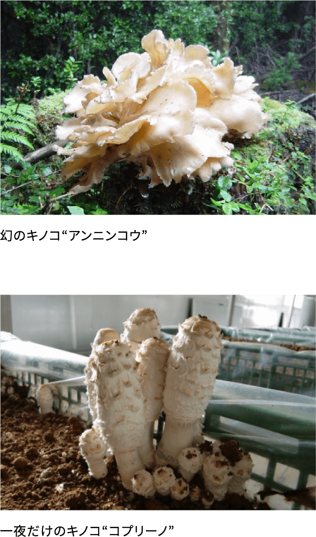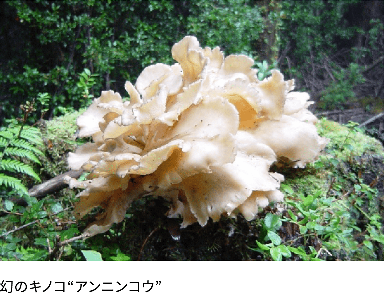 「珍しいキノコのひとつ、マイタケの仲間である“アンニンコウ”は杏仁やアーモンドのような香りがすることから名づけられた白い幻のキノコです。食感も良いうえ、エルゴチオネインが他のキノコより多く抽出されたのですが、南米でしか栽培が難しいキノコのため、私たちはなかなか食べることができません。