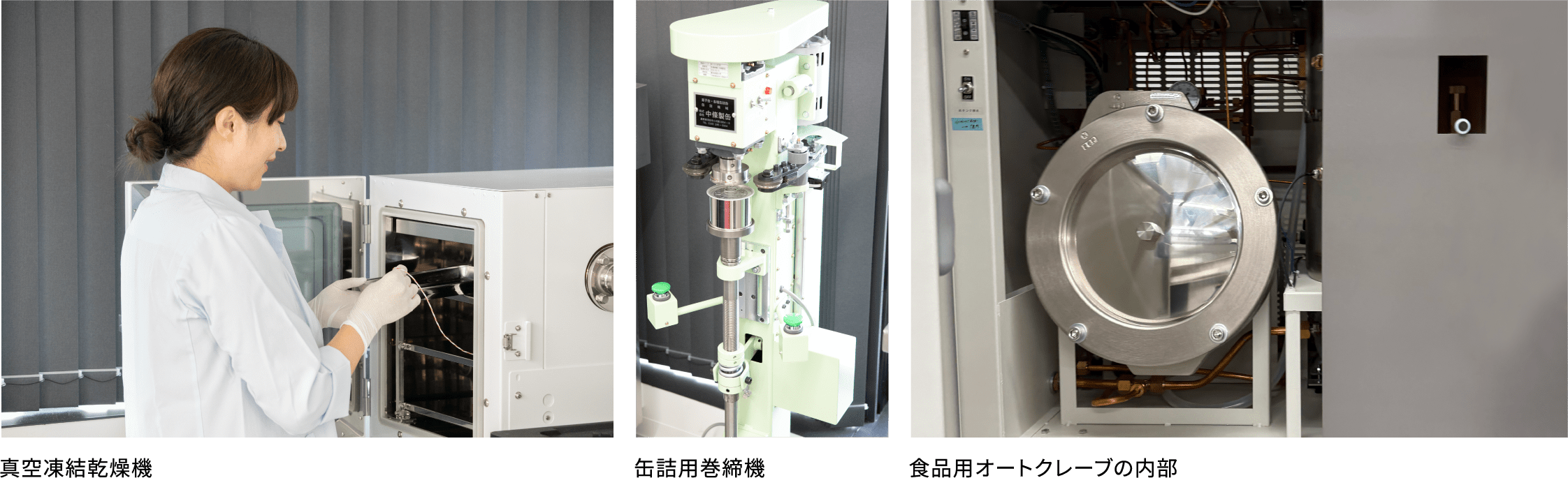 「例えば、パウチに入ったレトルト食品や缶詰食品はなぜ賞味期限が長いのか?――答えは、100℃より高い温度で殺菌を行うからです。通常、水は沸騰させても100℃までしか上がりませんよね。その煮沸では死滅しない細菌や芽胞(一部の細菌が形成する非常に耐久性の高い構造)が食品には存在するため、専用の機器で加圧することにより沸点を上げて、120℃などといった100℃よりも高い温度で殺菌しています。そうした処理を施した食品を真空包装するため、長期保存が可能になります」。