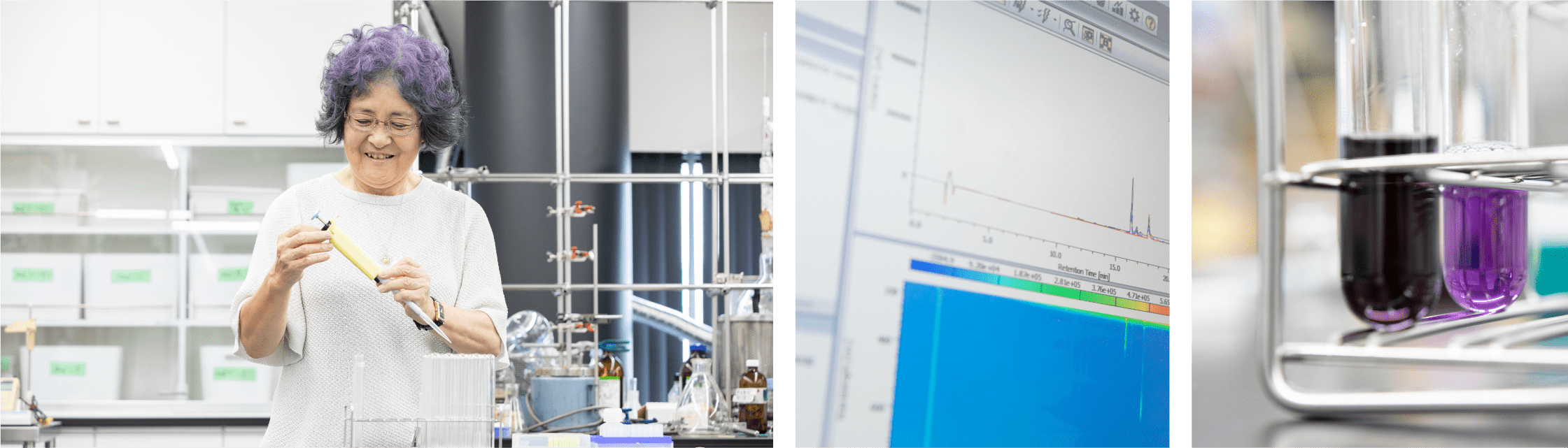 多くの科学者が、これまでも、そして現在も“アントシアニン”と向き合い、様々な試行錯誤を繰り返して、天然色素を使った“青色着色料”を生み出そうとしている。難しいからチャレンジしたい。解き明かしたい。吉田教授の探究心は、まだまだ止まらない。