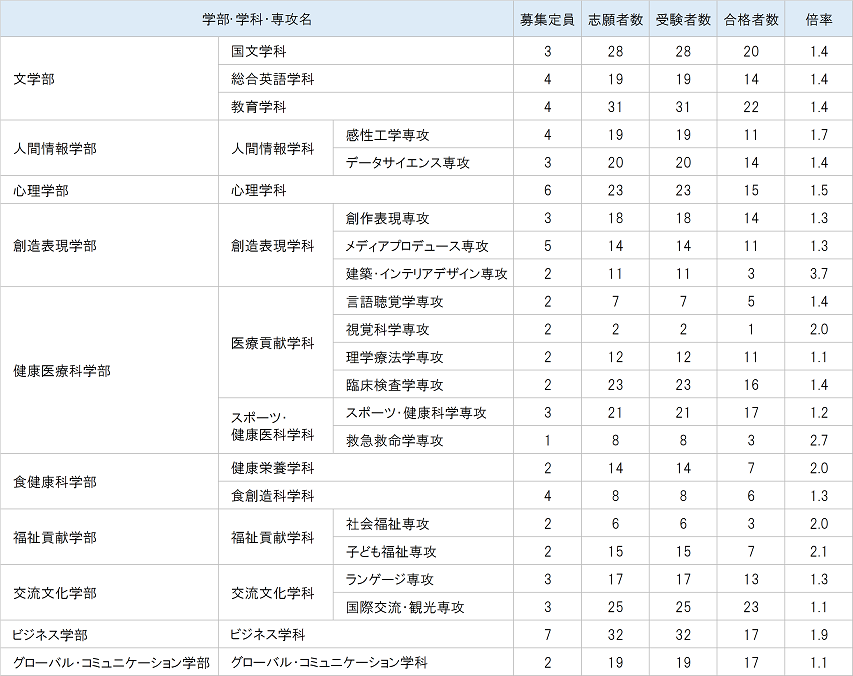 入試結果(募集定員・合格者数・倍率)